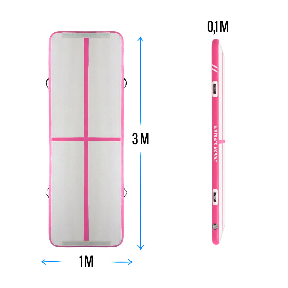 La colchoneta inflable AirTrack Nordic Home mide 3 metros de largo, 1 metro de ancho y 10 cm de espesor y está destinada principalmente para uso casero en la sala de estar o en el patio.